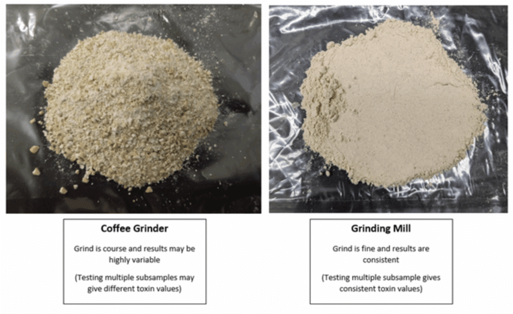 - PDS uses a grinder that produces a very fine grind product which produces consistent toxin values when testing multiple subsamples.